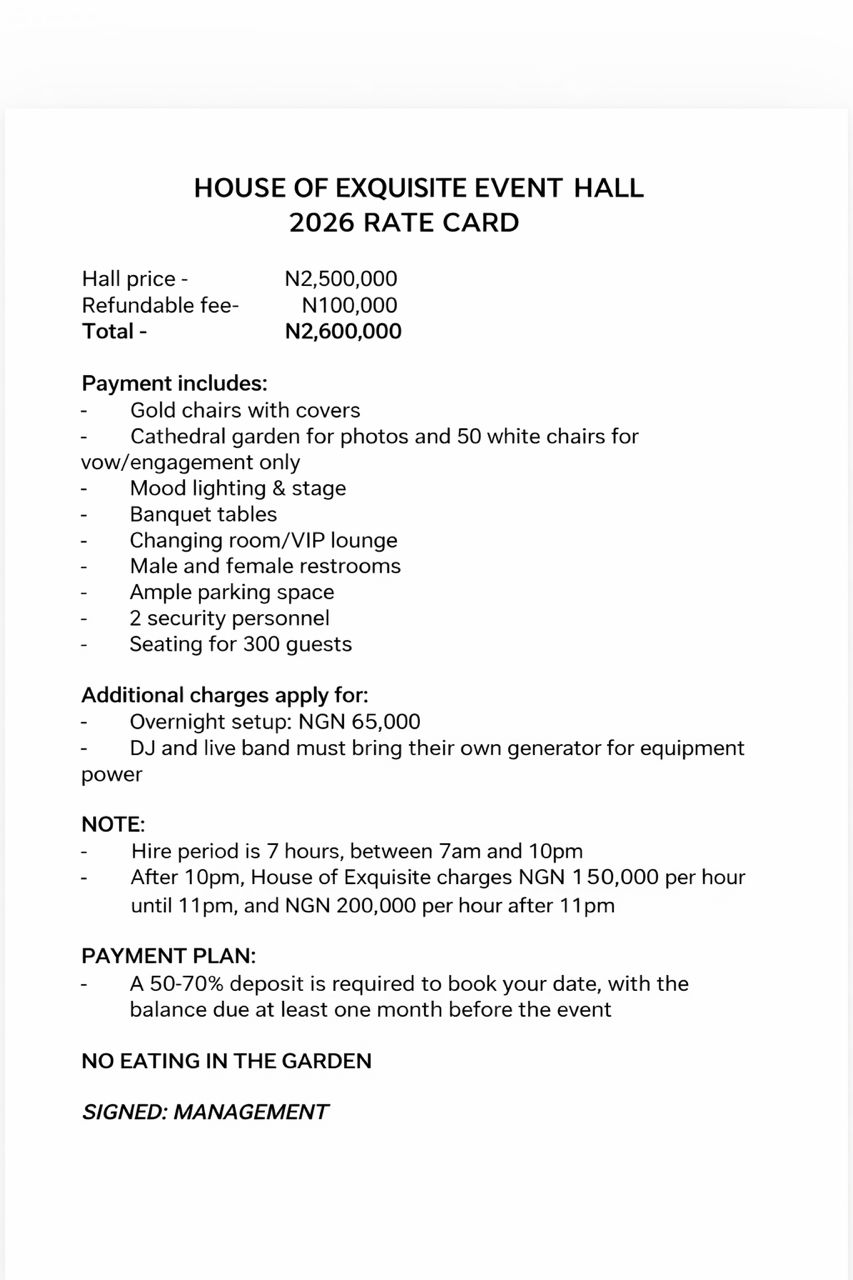 House of Exquisite Event Hall is the best event venue in Ipaja, Lagos, thoughtfully designed to host events that leave lasting impressions. Whether you’re planning an elegant wedding, a corporate conference, or a vibrant social gathering, our venue offers the perfect blend of beauty, comfort, and functionality.